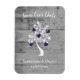 Ankündigen Sie Ihren bevorstehenden Hochzeitstag für Familie und Gäste mit einem Lila Tree of Hearts Save the Date Magnet. Das Magnet-Design ist mit einem grauen Holzboden verziert, der mit einem Baum mit blühenden Herzen an seinen Ästen geschmückt ist. Personalisieren Sie mit dem Bräutigam und den Namen der Braut zusammen mit dem Hochzeitstag. Zusätzliche Hochzeitswaren und Geschenke sind mit diesem Design ebenfalls erhältlich.