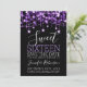 Lila & Schwarz Sweet 16 Geburtstag Funkelnd String Lights "Save the Date" Ankündigungsvorlage mit Party-Adresse und UAWG Details.