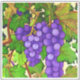 Aufkleber in einer reichhaltigen Weinrebe mit lila Trauben und grünen Blätter