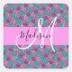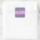 Lila, lila, aqua, türkisfarbene und grüne Meerjungfrau-Glitzer-Glitzern Monogramm-Name und Initial-Quadrat-Aufkleber. Individuelle Name und Monogramm sind in einem handgeschriebenen, eleganten Skript mit rosa Hintergrund geschrieben. Ein perfektes Geburtstag- oder Weihnachtsgeschenk!