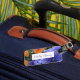 Lila u. orange Stiefmütterchen mit grünem Gepäckanhänger