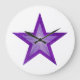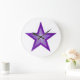 Modernes Design mit einem "leuchtenden" lila-weißen Stern auf weißem Hintergrund. Wall Uhr mit individualisierbarem Design für Sie, um mit Ihrem eigenen Text, Bildern und Ideen zu personalisieren. Bitte beachten Sie, dass es sich um ein gedrucktes Bild handelt, das mit Originalfotos und Digitaltechnik erstellt wurde, es nicht glänzt oder echte Glitzern enthält.