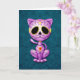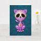 Dieses lila Kätzchendesign ist mit Wirbel und Punktmustern dekoriert. Gelbe Blume-Pedale umkreisen die reinen schwarzen Augen in der Tradition des Tages der toten Zuckerschädel. Die Katze sitzt da unten und sieht nach vorn, wie ihr Schwanz im Hintergrund windet. Der übergroße Kopf sitzt auf einem winzigen Körper, der ein spielerisches, Cartoon-ähnliches Aussehen schafft. Ein Fünf-Punkte-Stern sitzt in der Mitte der Stirn des Kätzchens, während in der Mitte der Brust ein leuchtend rotes und gelbes Herz auftaucht. Ein Schatten fällt auf den tiefblauen Hintergrund, wodurch das Design gerade über der Oberfläche dieser Karte zu schweben scheint. Diese niedliche kleine Katze ist ein lustiges und stilvolles Design, inspiriert durch die wunderschönen Muster des Tages der toten Zuckerschädel.
