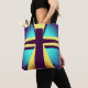 Lila und goldenes Kreuz auf blauem Hintergrund. Große Tasche, um alle Notwendigkeiten zu kirchlichen oder religiösen Feiern tragen. Erstellt mit KI-Software.