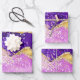 Lila- und Gold-Glitzer-Muster Geschenkpapier Set