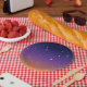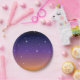 Dieses schöne Design zeigt Sterne aller Größen auf einem strahlend farbigen Nachthimmel, der mit den Farben, die vom Sonnenuntergang ausgehen, leuchtet. Der Hintergrund verblasst von sehr dunkel oben zu einem tiefen lila in der Mitte und schließlich eine goldene Orange unten. Dieses Sternenhimmel-Design ist so gut wie möglich, aber Sie können auch Ihren eigenen Text oder Bilder hinzufügen, um Ihre eigene individuelle Kreation zu machen.