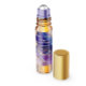 Ein Etikett für Parfümflaschen mit lila und goldfarbenem Marmor mit Imitaten.