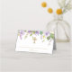 Ein kühner Imitat Glitzer kreuz mit lila und lila Blumen schmückt diese Taufe Platzkarten. Finden Sie passende Artikel in unserem Shop!