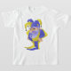 Ein lustiger Mensch als lila und grüner Jester. Dieses Design sieht auf diesem Boys T - Shirt wirklich effektiv aus