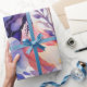 Lila und orangefarbene, blumendecouponfarbene Wass Geschenkpapier