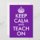 Anpassbare lila-weiße Textgestaltung "Behalt Calm and Teach On". Sie können Ihre eigene Parodie erstellen und die Formulierung ändern.