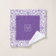Lila und weiße Damast-Muster und geschliffene Ränder Bath Handtuch Set. Das Badetuch weist ein elegantes, lila-weißes Damastmuster auf, und die kurzen Bänder sind mit geschliffenen Kanten lila. Es gibt auch einen Rahmen mit Ihrem Familiennamen. Das Handtuch zeigt einen geschossenen Rahmen, während das Schlagtuch in der Mitte mit einem Damast-Rahmen und dem Monogramm lila ist. Sie können es mit Ihrem Familiennamen und Monogramm personalisieren.