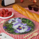 Lila und weiße Stiefmütterchen farbenfroh bläserne Pappteller