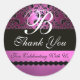 LILA VIOLET-BLACK-DAMASK-MONOGRAMM RUNDER AUFKLEBER