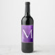Modernes Glam Lila Violet Monogram, Girly Script Metallic Steel Wine Label