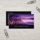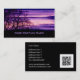 Schöne Baum-Silhouette gegen einen atemberaubenden Himmel und einen Sonnenuntergang mit den lila und rosa Farben. Kundenspezifische Visitenkarten. Addieren Sie Ihren eigenen Text und QR Code (oder löschen Sie, wenn nicht erforderlich). Fertigen Sie für mehr Wahlen besonders an (Schriftartfarben, Positionen, Extratext)