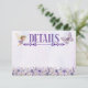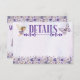 Diese Blumengeburtskarte mit einer bezaubernden lila Blumenlandschaft wird Ihre Party begeistern und den Zauber eines zauberhaften Tages als Fee in einem ätherischen lila Kleid genießen. Ihre lila Schmetterlingsfreunde flattern und wirbeln vor einem Aquarellhintergrund.