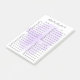 Tägliche Organisation von Post-it-Notebooks mit Listen in vier Kategorien: Schnell, kaufen, anrufen/email, sauber, aber Sie können sie nach Ihren eigenen Bedürfnissen personalisieren. Das praktische Notizblock ist mit einem Lavendel-Aquarell ausgestattet. Fügen Sie Ihren Namen in einem charmanten Skript hinzu.