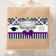 Schwarz-weiß Stripe Damask Lila Bow Ribbon Party Wasser Flasche Etikett - Graduation Party Ein Design mit einem schwarz-weiß Damast Muster gepaart mit einem schwarz-weiß gestreiften Muster. Es ist mit einem goldene satinierte Bugband geschmückt. Bitte beachten Sie, dass es sich hierbei nicht um Gewebe, Bänder, Metalle, Prägungen usw. handelt. Es ist ein grafisches Design oder Foto, das auf das Material des zugrunde liegenden Produkts übertragen wird. 2013 ©itsMyPartyDesigns Alle Rechte vorbehalten