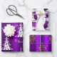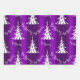 Dieses lila Weihnachtsgeschenkpapier-Set zeichnet sich durch drei sehr unterschiedliche lila Muster für Ihre Weihnachtsgeschenkverpackung aus: ein zeitgenössisches Weihnachtsbäummuster mit den Worten "Be Merry" in Weiß, verstreut um sehr modern aussehende Weihnachtsbäume, das zweite Blatt hat ein bezauberndes Muster von kleinen Schneemännern in lila Samthüten und Westen, und Westen, und das dritte lila Weihnachtswölben. Flakes) auf einem lila Verlauf.