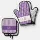 Lila-weiß-Mit Monogramm-Polka-Dot Ofenhandschuh & Topflappen-Set