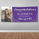 Schulfarbenbanner mit lila Hintergrund, der in jede beliebige Farbe geändert werden kann, Foto des Absolventen, Glitzer mit Gold, das Wort "Glückwünsche" in einem Schattenskript, der Name der Absolventen, Schule und Klassenzjahr.
