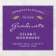 Feiern Sie den Meilenstein Ihres Absolventen stilvoll mit diesen individuellen Abschluss-Schaumweinflaschen-Etiketten, die mit den Worten "Herzlichen Glückwunsch an unseren Absolventen" in weißem Text auf lila Hintergrund. Das Wort "Graduate" erscheint in einem anmutigen Skript im Handschriftenstil. Ein paar goldene Imitate Glitzer Mörtel-Kappen und eine Streuung von Goldkonfetti schmücken den oberen Teil des Etiketts. Personalisieren Sie es mit dem Namen, der Schule und dem Jahr des Abschlusses.