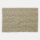 Die lila wilden Stiere, die in einem Kräuterdesign mit viel natürlichem Laub angeordnet sind, sind auf einem antiken taupe Hintergrund mit schwachen Blätter. Nahtloses Bild.