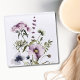 Entspannen Sie in diesem hübschen Untersetzer aus Glas mit einem farbenfrohen Blumenstrauß lila Wildblumen, darunter auch Lavendel. Eine botanische Touch für Natur- und Gartenliebhaber.
