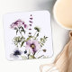 Entspannen Sie in diesem hübschen Untersetzer mit einem Aquarellbukett aus lila Wildblumen, darunter auch Lavendel. Eine botanische Touch für Natur- und Gartenliebhaber.