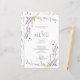 Mit diesem angesagten 5.5"x 8.5" Menü-Design mit hübschen und feinen, trendigen Wildblumen schaffen Sie den perfekten Empfang. Personalisieren Sie Ihre Details mit schönen modernen handgeschriebenen Kalligrafien in weichem Offschwarz. Ideal für, aber nicht beschränkt auf diesen Garten und Garten Hochzeit. Teil eines entsprechenden Set. Vollständige Sammlung hier: https://www.zazzle.com/collections/purple_lilac_lavender_wildflower_wedding-119347990909221303. Copyright Elegant Invites, alle Rechte vorbehalten.