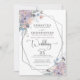 Schöne Frühlings- oder Sommerhochzeit mit pastellfarbenen Boho Wildblume Blumenbouquets in den Farbtönen lila, violett, lila, lavender, staubblau, pfirsichblau, rot und salzgrün und mit kohlegrauem Schriftzeichen und Text und einem silbergrauen geometrischen Rahmen betont. Wenden Sie sich an den Designer, BEVOR er die Bestellung über Zazzle Chat oder makeitaboutyoustore@gmail.com für Designänderungen, Hilfe bei der Personalisierung oder der Übertragung des Designs auf ein anderes Produkt oder für die Koordination von Gegenständen.