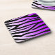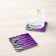 Auf diesen Kork-Untersetzer ist ein wildes, sassy lila und schwarzes Zebramuster zu sehen.