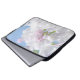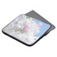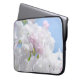 Macro Foto einer zarten lila Blume von weiß und rosa Farben vor dem Hintergrund von grünen Blätter und blauem Himmel. Texturierte Fotos.