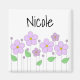 Ein quadratischer Magnet mit lila Blume und Namen. Passen Sie den Magneten unter anderem mit Ihrem speziellen Namen oder Text, Hintergrundfarbe, an.