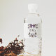 Rustikales Hochzeitswasserflaschenlabel mit handgezeichneter Abbildung von lila Bändern mit Blume.