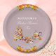 Fügen Sie Ihrem Baby Shower Tea Tea Party eine Touch Charme mit diesem personalisierten, weißgetünchten Papierteller-Design hinzu! Dieser Teller ist mit einem zauberhaften Blumenteapot und Teakup ausgestattet und mit einem edlen Tortenständer gefüllt mit köstlichen Kuchen, die mit weichem Rosa und gelbem Eis und hellen roten Kirschen überzogen sind. Er ist perfekt geeignet, um die Mutter zu sein. Set vor einem sanften Hintergrund mit eleganter weißer Typografie und anmutigen Script-Schriftart, verleiht es Ihrem Tee-Party-Babydusche ein süßes und raffiniertes Gefühl. Eine schöne Wahl für ein unvergessliches und stilvolles Fest.
