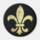 Runder Magnet mit einem Bild einer Lilie aus Goldblatt auf schwarz. Sehen Sie sich die gesamte Cancan Magnet Kollektion in den SPEZIELLEN TOUCHS an. | Abschnitt Gastgeschenke.