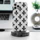 Elegantes, stilvolles und raffiniertes Muster mit schwarzem Lilie-Muster auf weißem Hintergrund. Modernes und trendiges Design, perfekt für den heraldry Ladeliebhaber.