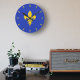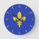 Eine königsblaue Wanduhr mit Gold Lilie: eine elegante Dekoration für Zuhause oder Büro!