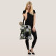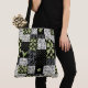 Eine sehr schicke Tote Tasche, mit einem Imitat-Flickwerk aus Lily of the Valley-Mustern auf schwarzem Hintergrund, aus der Posh & Painterly 'For the Liebe of Lilies' Kollektion. Dieses Muster kann an jeden Beutel angepasst werden und Sie können dieses Muster auch anpassen, indem Sie die Bildfliese drehen oder neu skalieren.
