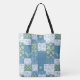 Eine sehr schicke Tote Tasche, mit einem Imitat-Flickwerk aus Lily of the Valley-Mustern auf einem hellblauen Hintergrund, aus der Posh & Painterly Kollektion "For the Liebe of Lilies". Dieses Muster kann an jeden Beutel angepasst werden und Sie können dieses Muster auch anpassen, indem Sie die Bildplatte drehen oder neu vergrössern.