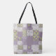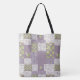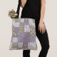 Eine sehr schicke Tote-Tasche mit einem Imitat-Flickwerk aus Lily of the Valley-Mustern auf einem nostalgischen Mauve-Hintergrund, aus der Posh & Painterly Kollektion "Für die Liebe von Lilies". Dieses Muster kann an jeden Beutel angepasst werden und Sie können dieses Muster auch anpassen, indem Sie die Bildfliese drehen oder neu skalieren.