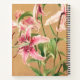 Ce motif vintage est vert, blanc et rose avec des lys.