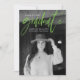 Moderne Abschluss-Ankündigungskarte mit dem beliebten Foto Ihres Absolventen auf der Vorderseite mit "Graduate" in einer limigrün handgeschriebenen Schrift. Personalisieren Sie die Vorderseite der Ankündigung, indem Sie den Namen des Absolventen, den Schulnamen und das Abschluss Jahr. Die trendige Ankündigung des Abschlusses kehrt zurück, um weitere 3 Fotos mit Platz für Text wie Zukunftspläne, Abschluss Details, Party Details, etc. anzuzeigen. Die 4 Foto Abschluss Ankündigung ist perfekt für Absolventen der Highschool und der Uni.