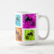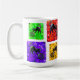 Colorful pop art design featuring a grid of playful black cats in bold neon squares, mixing bright green, orange, purple and blue backgrounds with expressive brush strokes. The vibrant Warhol-style composition creates a fun modern look that attracts cat lovers, art fans and anyone who enjoys funky, eye-catching design.