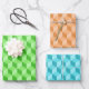 LIME GREEN PEACH AQUA BLUE GEOMETRIC CUBE PATTERS GESCHENKPAPIER SET