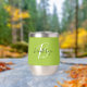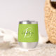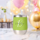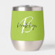 Dieser personalisierte Thermalweintumbler zeichnet sich durch ein Monogramm und einen Vornamen in modernem Schwarz-Weiß-Drehbuch auf einem angesagten limiengrünen Hintergrund aus.