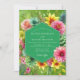 Celebrate your union with a lush and vibrant botanical design. A lime green background sets the stage for an explosion of painterly blossoms in shades of hot pink, sunny yellow, and soft rose. Watercolor dahlias, romantic roses, and unique teal succulents create a cheerful arrangement for a joyful affair.