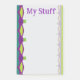 Organisieren Sie Ihre Gedanken mit diesen limegrünen und lila Retro-Post-it-Notes. Die Worte „My Stuff“ können geändert werden. Perfekt für Teenager, die expressive Schreibwaren lieben, also wenn sie Tagebuch schreiben, planen oder einfach nur aufschreiben, was ihnen durch den Kopf geht, ist dies das perfekte Geschenk.